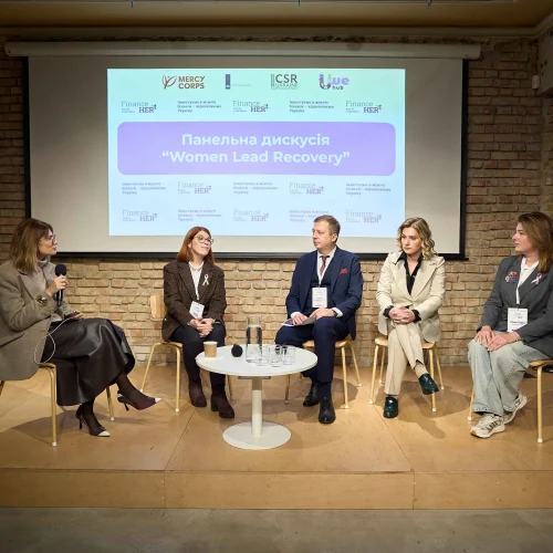 FinanceHER — це національна ініціатива, що базується на трьох ключових напрямах: цифрова, фінансова та підприємницька грамотність. Проєкт реалізується CSR Ukraine за фінансової підтримки Mercy Corps. Партнер — Уряд Нідерландів.