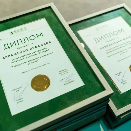 25 жовтня 2025 року відбувся фінал третього випуску програми «Корпоративне управління у фінансових установах», що об’єднала 35 представників банків та небанківських фінансових установ, страхових компаній. Зростання кількості учасників цього року підтверджує високий інтерес до теми корпоративного управління та запит на практичні знання у цій сфері.Протягом шести насичених навчальних днів учасники поглиблювали свої знання у сфері корпоративного управління, управління ризиками, комплаєнсу, антикорупційних практик, а також вивчали роль штучного інтелекту у фінансовому секторі.